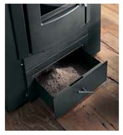 Le Brasero flottant garantit que toutes les cendres tombent directement dans le tiroir à cendres se trouvant au-dessous. Pour le vider, il suffira donc de le sortir. Le compartiment qui loge le tiroir permet également d'accéder aisément au parcours des fumées afin de réaliser les opérations de nettoyage à l'aide d'un aspirateur de cendres.