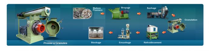 Une fois ces opérations terminées il passera au processus de granulation dans une presse à granulé avant d'être refroidit de manière à conserver sa forme.Il finira ensuite par être ensaché et stocké ou directement stocké en vrac avant d'être livré chez l'utilisateur final.C'est la partie de séchage qui consomme le plus d'énergie grise.
